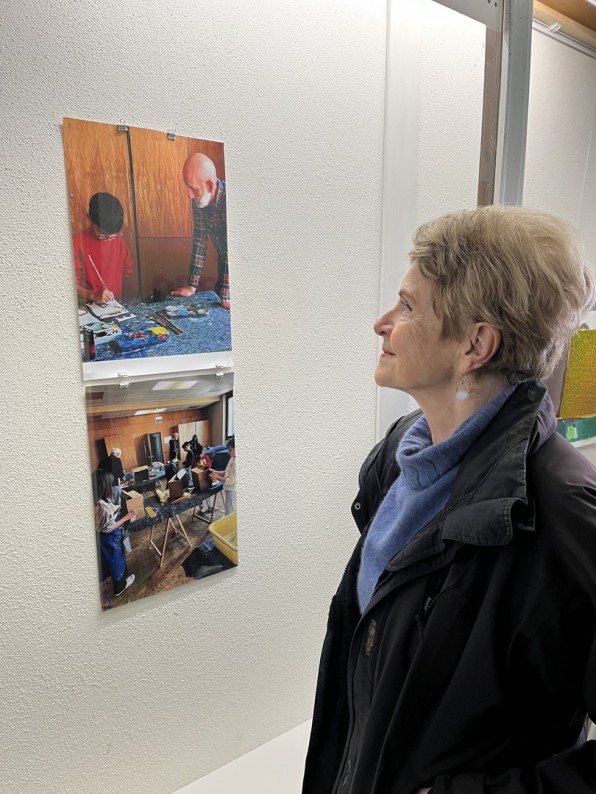 Das Workshop-Team mit Marianne und mir nimmt 2023 nach fast dreijähriger Corona-Pause endlich wieder die Schülerworkshops in den aktuellen Ausstellungen auf.